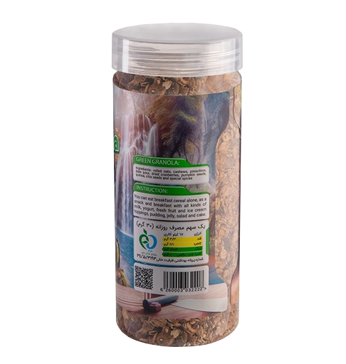 ترکیبات | ادویه جات مخصوص, بادام هندی, پسته, تخم کتان, جو دوسر پرک, دانه چیا, دانه کینوا سفید, شیره خرما, کرنبری, کنجد, مغز کدو |